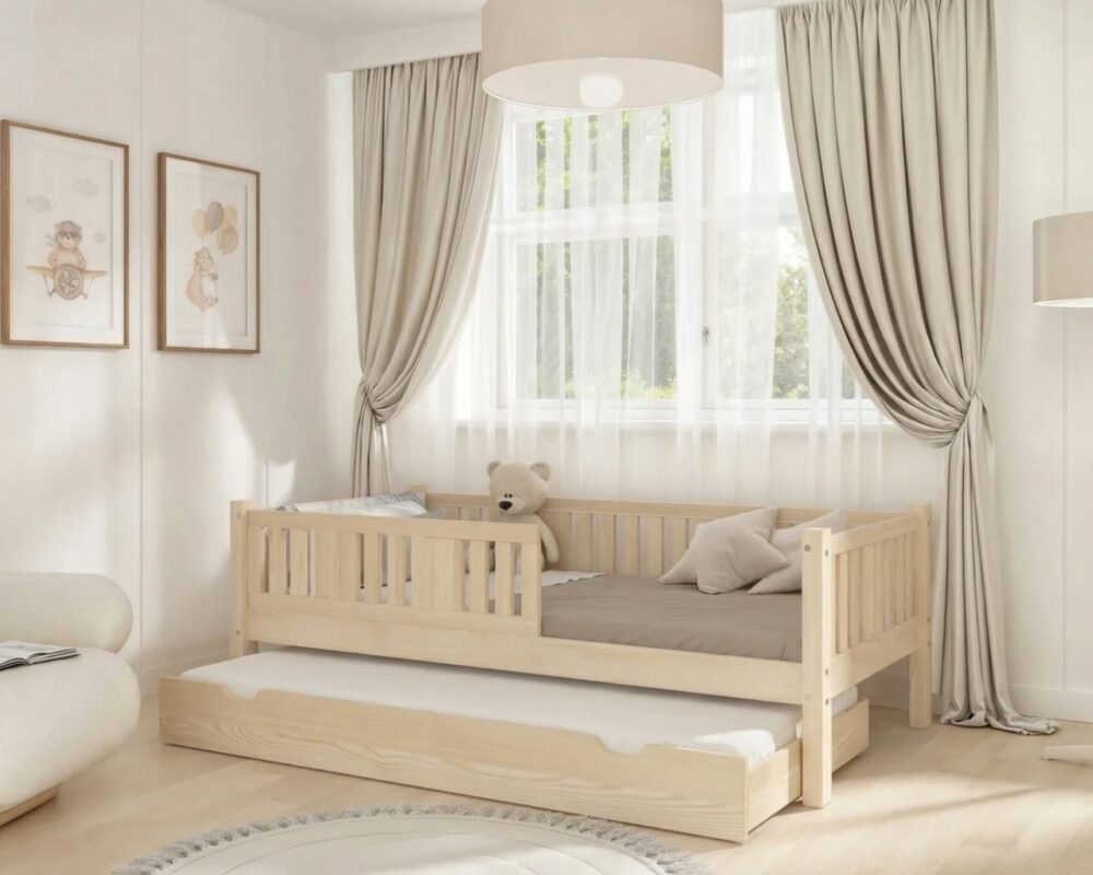 Fremstillet af de bedste materialer tilbyder vores træseng ikke kun et flot udseende, men også holdbarhed og komfort i mange år. Med forskellige størrelsesmuligheder er den ideel til babyer, småbørn og større børn. Hver af vores senge imponerer med en solid konstruktion, der sikrer stabilitet og en god nattesøvn.