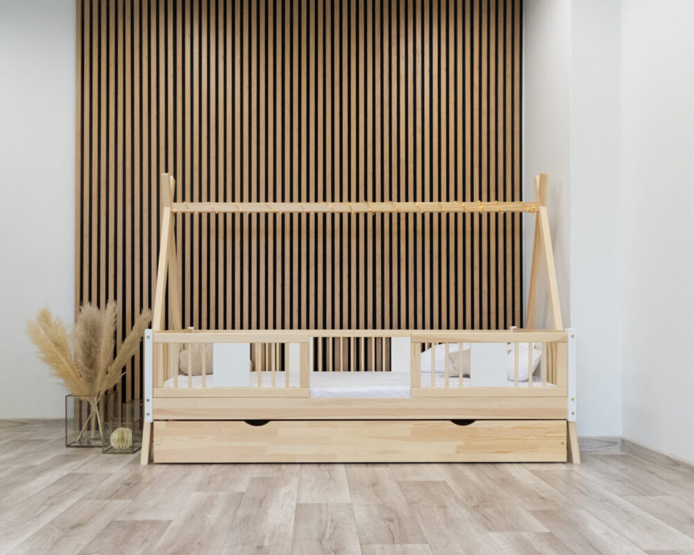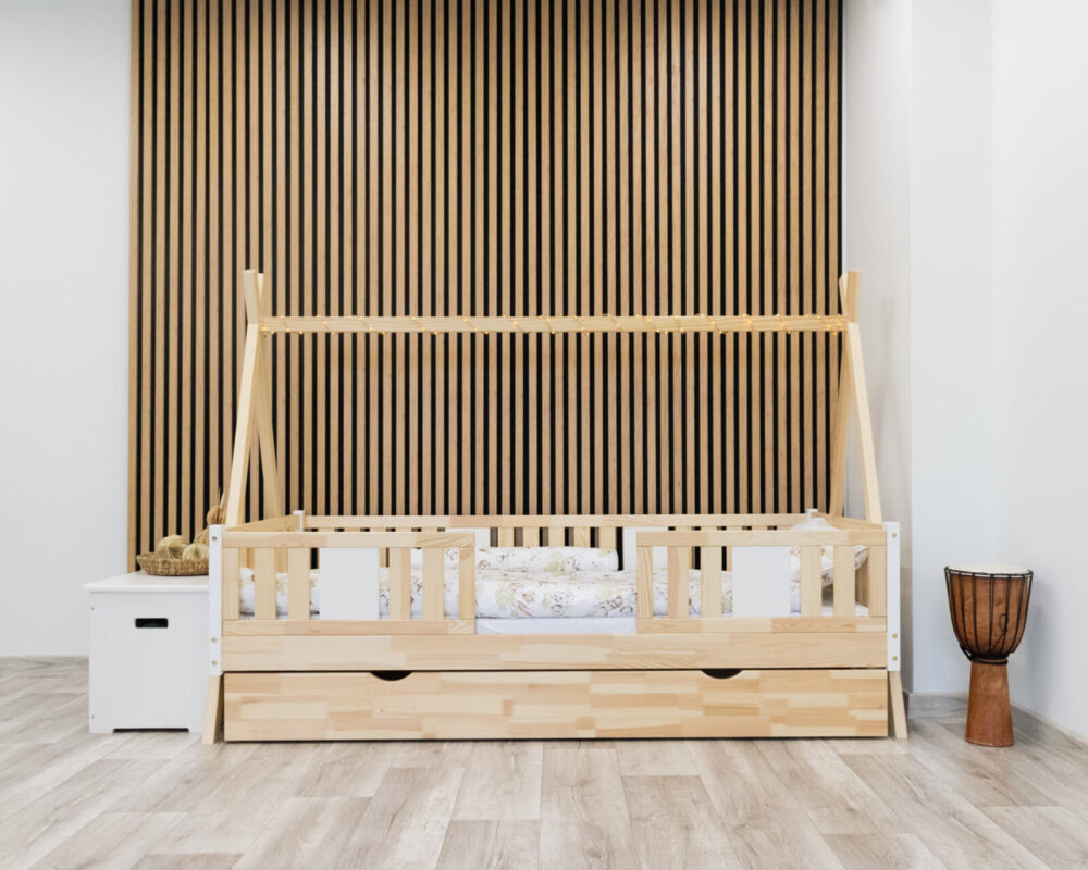Træ-hussengen er den ideelle løsning for børn, der drømmer om en hyggelig og unik soveplads.