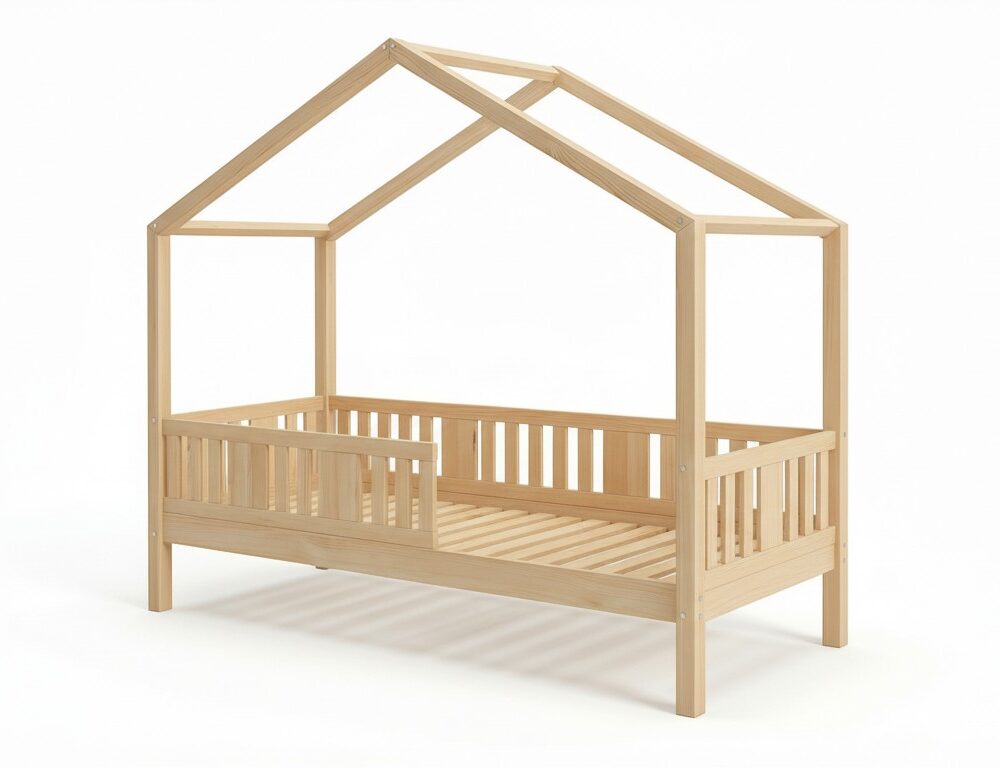 LUNETTA med skuffe er en unik enkeltseng i husform, der kombinerer funktionalitet, holdbarhed og eventyrlig charme. Takket være den forhøjede konstruktion på 20 cm høje ben får denne model en ny dimension af praktisk anvendelighed – under sengen kan der placeres funktionelle skuffer, som hjælper med at holde orden på børneværelset eller giver en ekstra soveplads. Den fuldt ud naturlige konstruktion i fyrretræ garanterer holdbarhed, sikkerhed og et enestående udseende. Det karakteristiske trætag giver helheden en helt særlig atmosfære – det skaber et rum, hvor søvn, leg og fantasi smelter sammen hver dag.